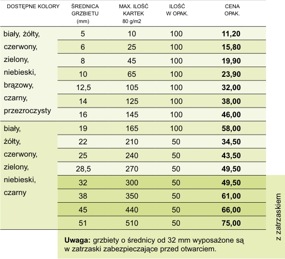 Grzbiety wsuwane i zatrzaskowe, wpinki do segregatora