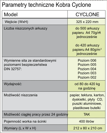 Kobra Cyclone jest unikatowym osiągnięciem technologii niszczenia dokumentów zaprojektowanym specjalnie do